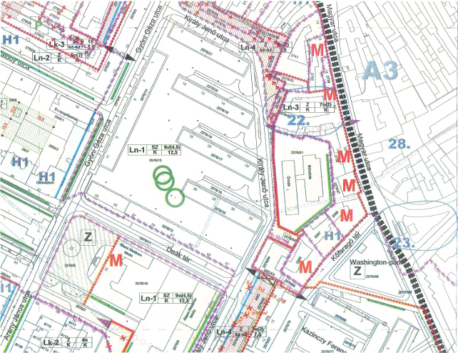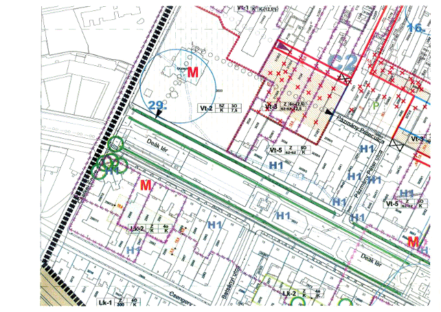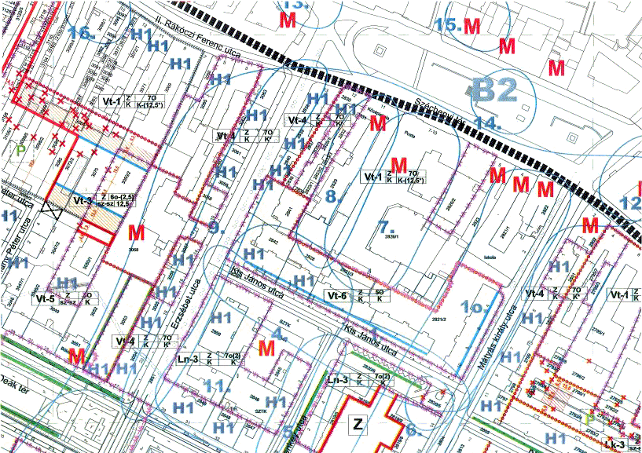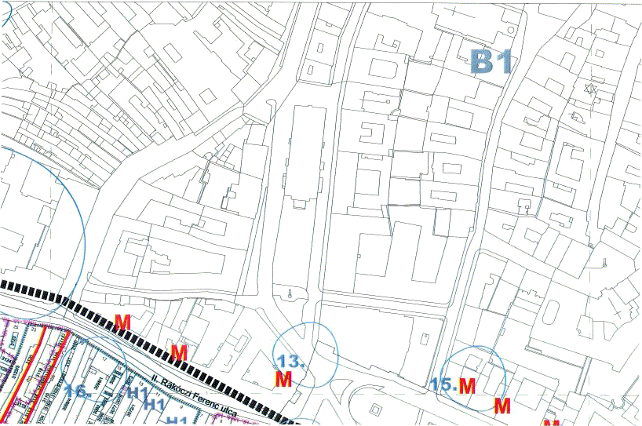 Rákóczi utcai tömb: 3050/1, 3085, 3086, 3098/2, 3099/1, 3099/5,