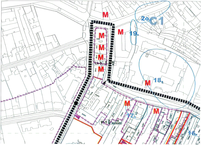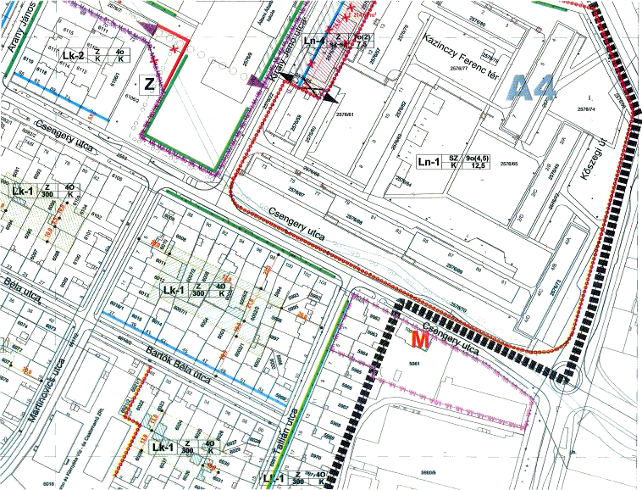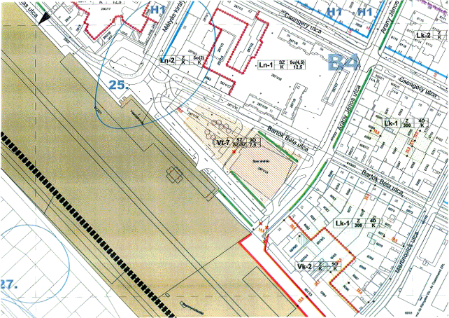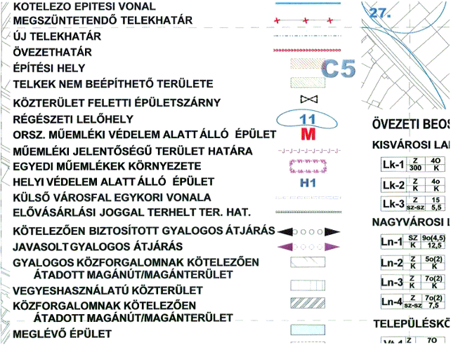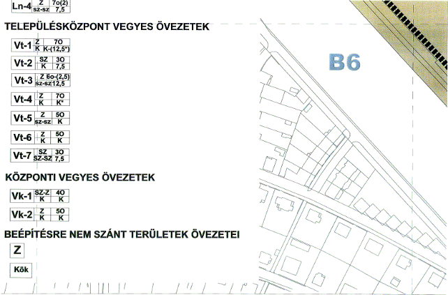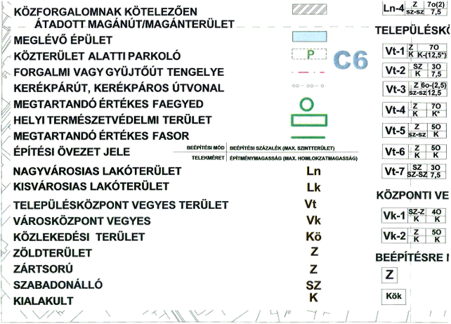 c) „K” jel építménymagasság és beépíthetőség mértéke vonatkozásában a szomszédos, beépített telkeknél kialakult állapotot jelenti.