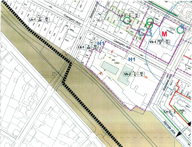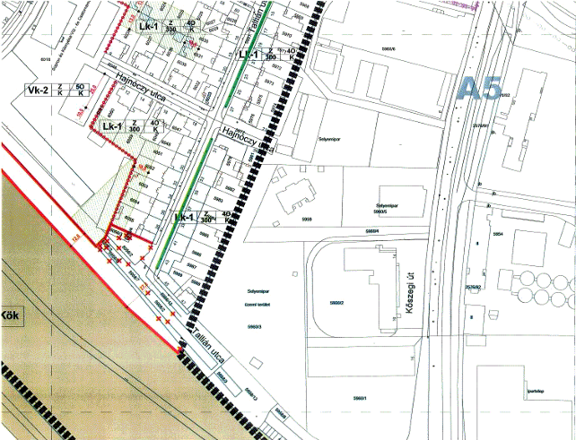 Állomás utca meghosszabbítása: 6079/2, 6056/2,3,4, 6057/2, 5958/2,7,8, 6122/1 (GYSEV) egy része
