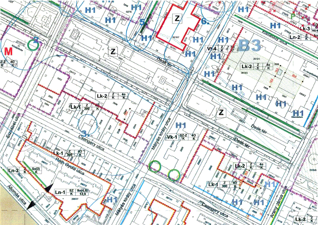 3. § (1) A szabályozási tervlapokon az alábbi szabályozási elemek szerepelnek: