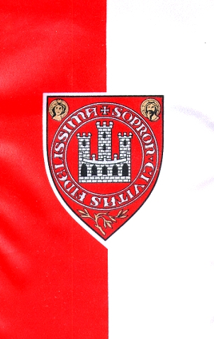 4. § (1) Sopron Megyei Jogú Város zászlója: téglalap alakban, hosszában középen osztott, piros-fehér színű, a színek egyeznek a magyar nemzeti színű zászló piros és fehér színével. A piros szín fekvő téglalapnál felül, függő téglalapnál baloldalt helyezkedik el. A címer mindkét helyzetben a zászló közepén helyezkedik el. A zászló lenyomata jelen rendelet 2. mellékletét képezi.