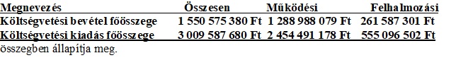 3. § (1) A 2. § (1) bekezdésben megállapított költségvetési bevételek forrásonkénti, a költségvetési kiadások jogcímenkénti megoszlását önkormányzati szinten, továbbá a finanszírozási bevételeket és kiadásokat a rendelet 1.1. melléklete alapján határozza meg a képviselő-testület.