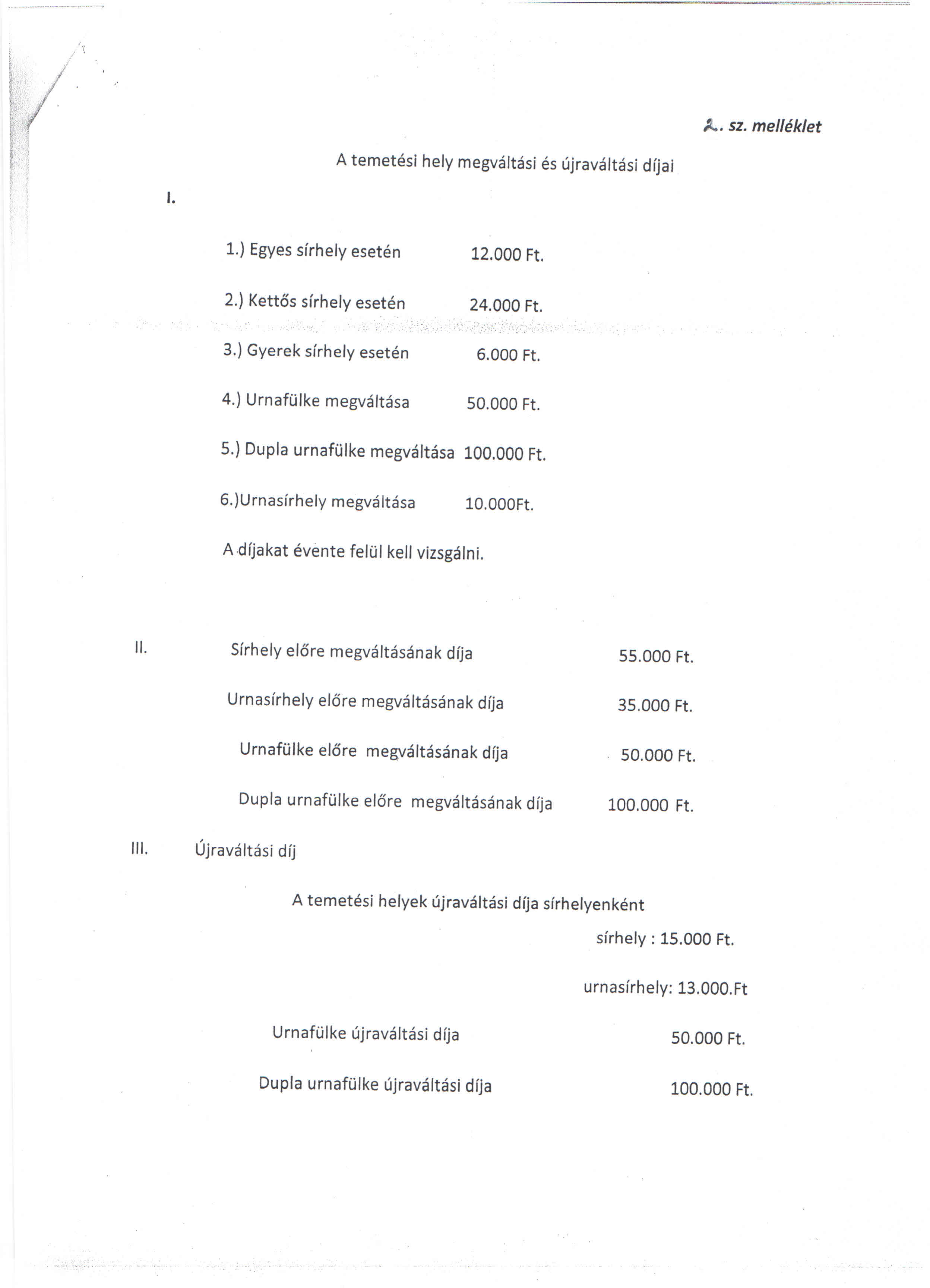 (2) A temetési helyek megváltási, és újraváltási díját a 2. sz. melléklet tartalmazza.