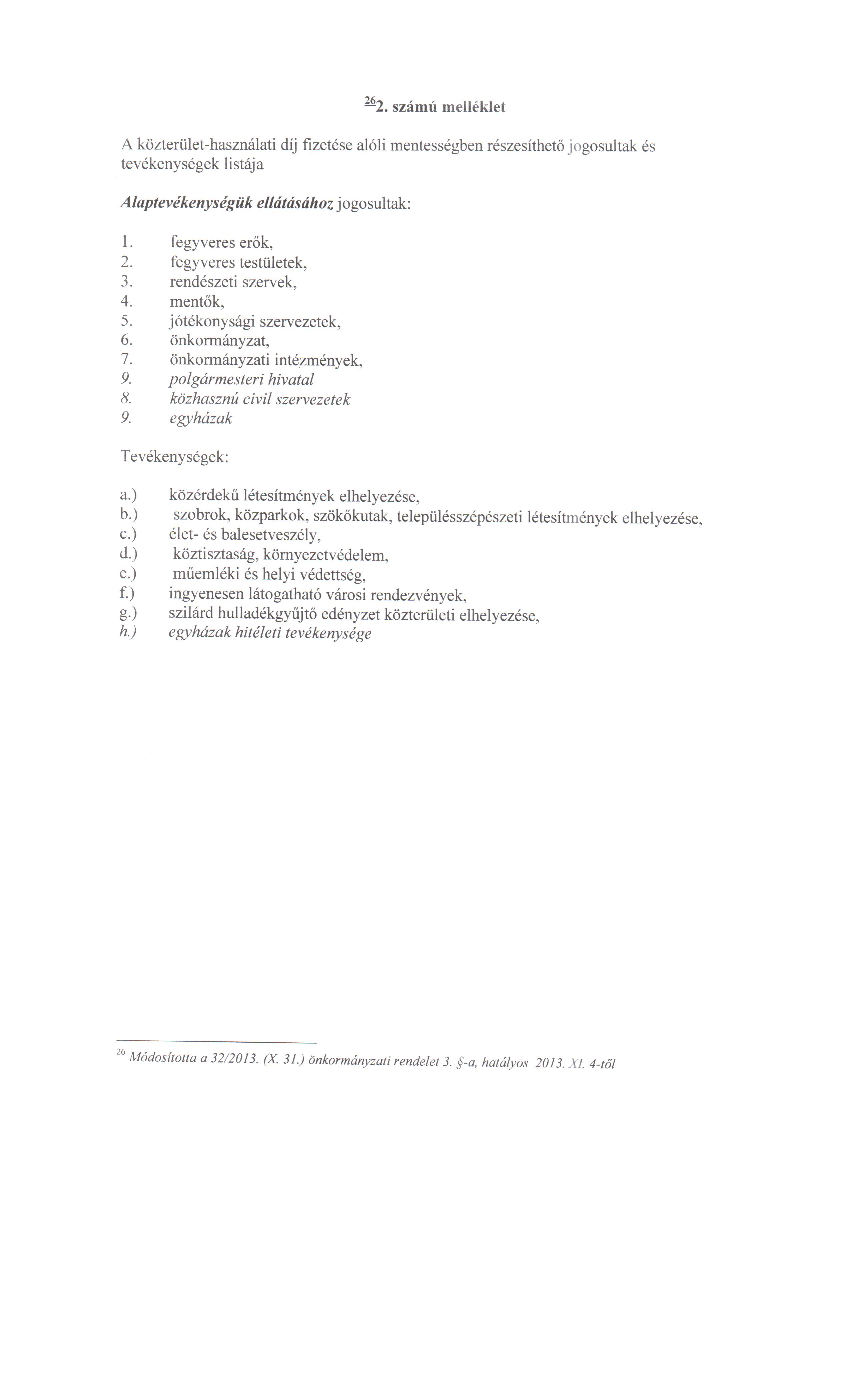 módosította a 32/2013. (X. 31.) önkormányzati rendelet 2. §-a, hatályos 2013. XI. 4-től