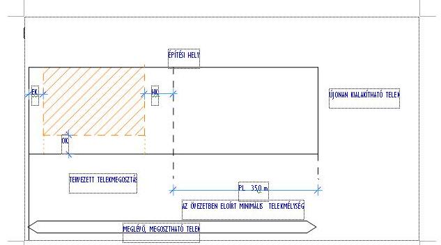 A telekalakítás során az utca felöl szabályozott építési övezetre előírt legkevesebb telekmélységet kell legalább megtartani, ezzel együtt az ellentétes oldalon (a telek másik végén lévő utca felöl) is biztosítani kell az övezet szerinti legkevesebb telekmélységet. Ezen elv, illetve szabály megtartásával, a telek tényleges mélysége szabadon, igény szerint választható meg.