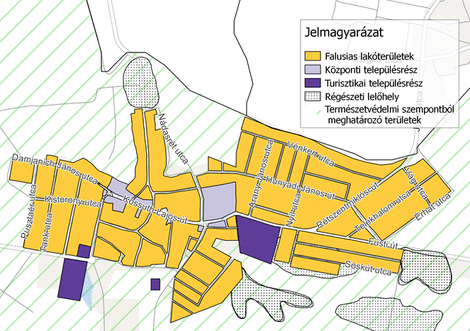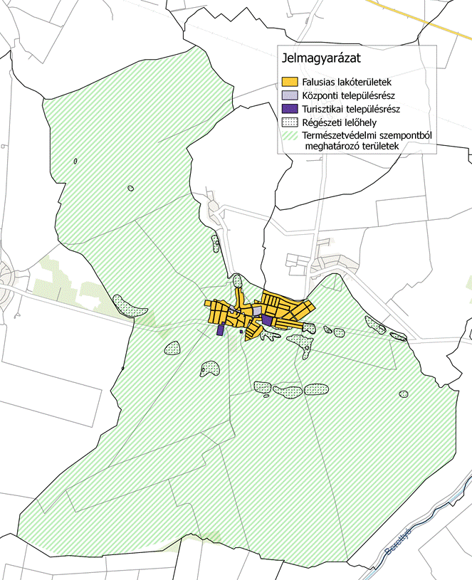 11. § A településszerkezet, településkarakter, tájképi elem és egyéb helyi adottság alapján a településképi szempontból meghatározó területek az 1. mellékletben lehatárolt