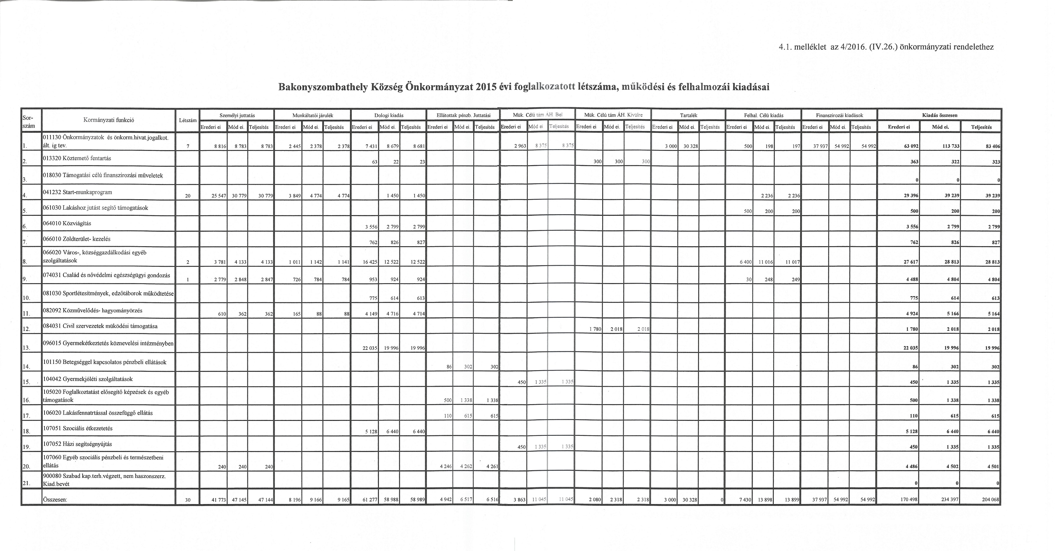 a 2015. évi pénzügyi terv végrehajtásáról.
