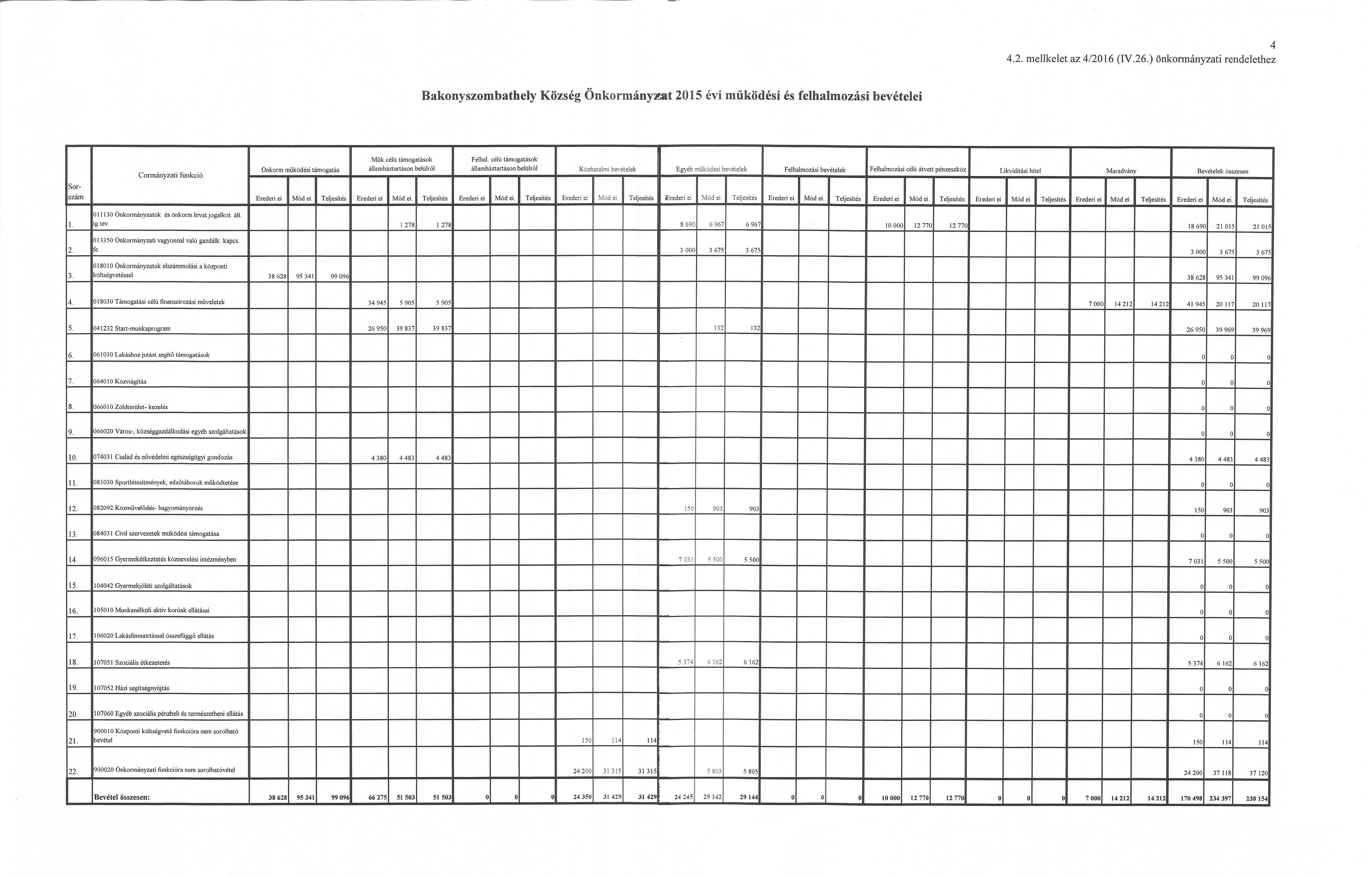 A képviselő-testület az Önkormányzat 2015. évi zárszámadását részletesen a következők szerint fogadja el: