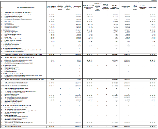a) bevétel fő összegét 441.447.490,- Ft-ban