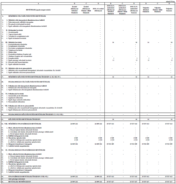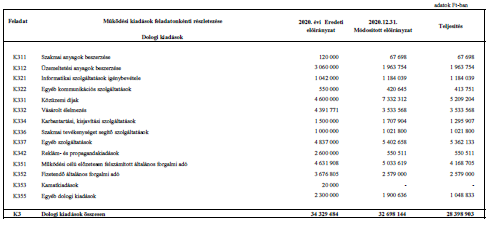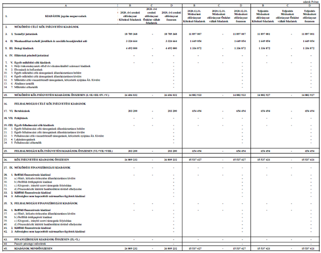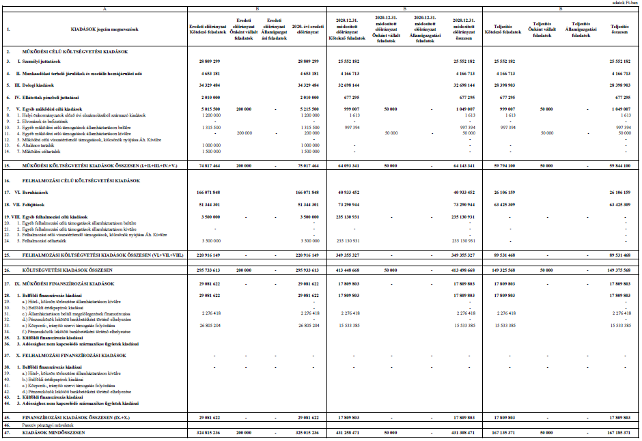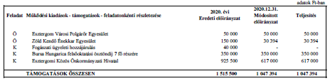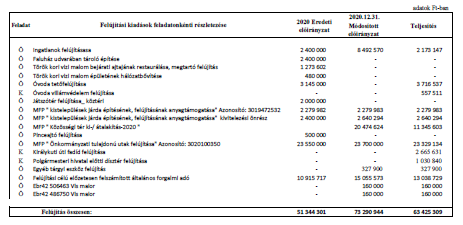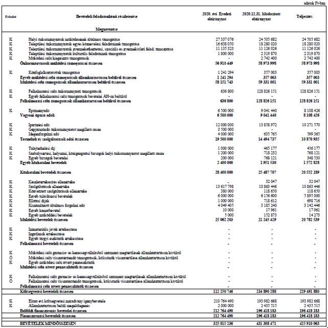 2. § (1) A Képviselő-testület az önkormányzat 2020. évi költségvetés teljesítésének