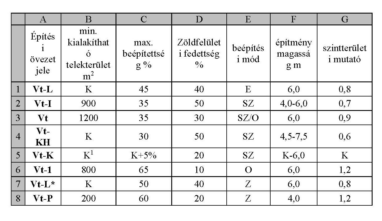 a) a különböző lakóövezetekben az egyes telkek minimális zöldfelületi borítottságát az egyes építési övezetek előírásai tartalmazzák.