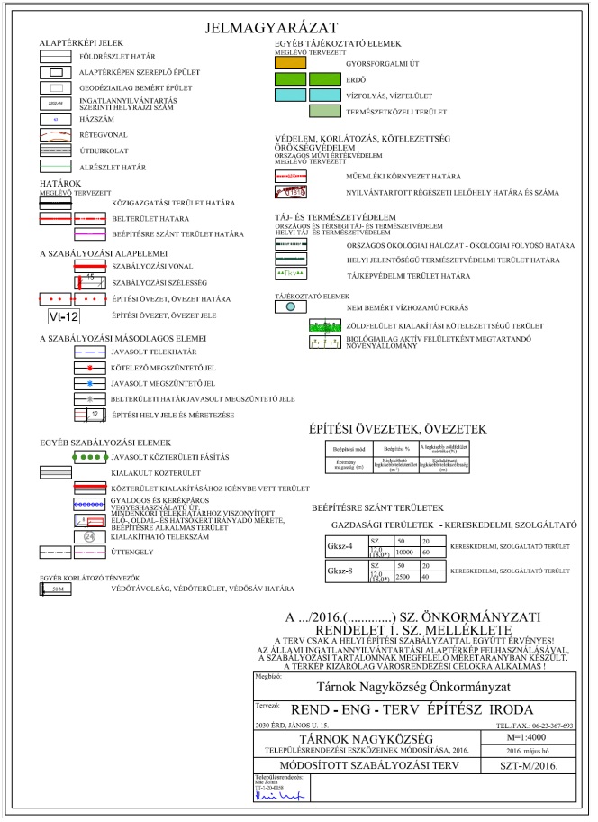 4. § (1) Tárnok közigazgatási területén a meglévő és tervezett belterületi határvonalakat, valamint a beépítésre szánt területek határait a SZT tünteti fel.