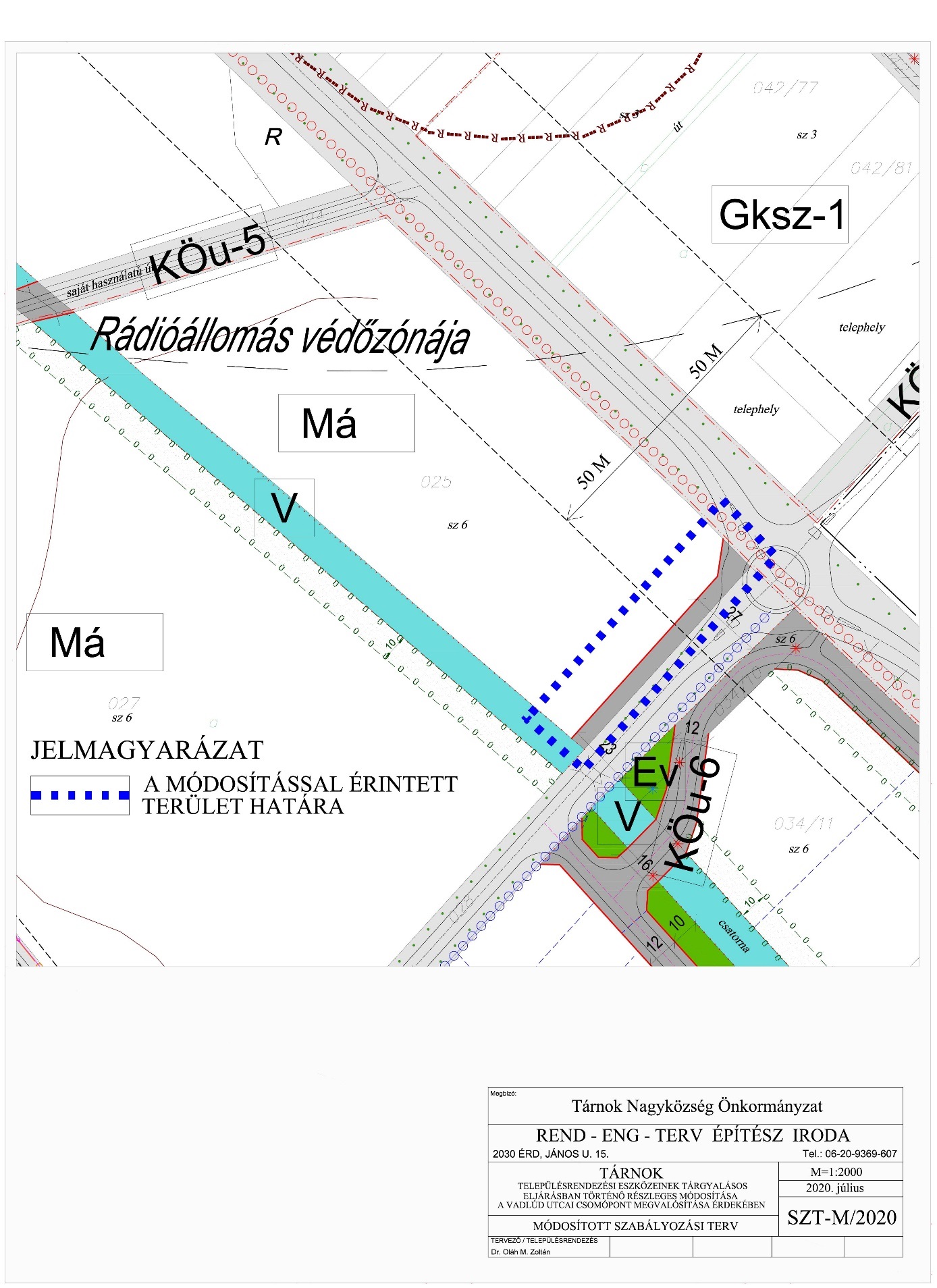 a) 1. sz. Rajzi melléklet: M = 1 : 4000 méretarányú Módosított Szabályozási Terv (SZT-M/2013. T1-4. és T7. szelvény + SZT-M/2014. T8. szelvény + SZT-M-2/2016. T5. és T6. szelvény + SZT-M-1/2020. + SZT-M-2/2020. + jelmagyarázat - 2020)3