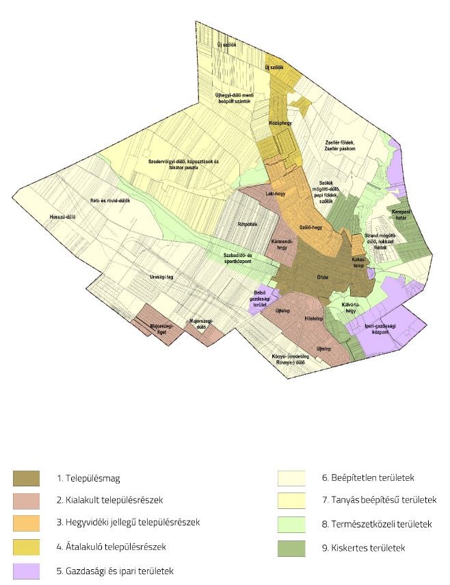 b) településképi szempontból eltérő karakterű területek meghatározásával,