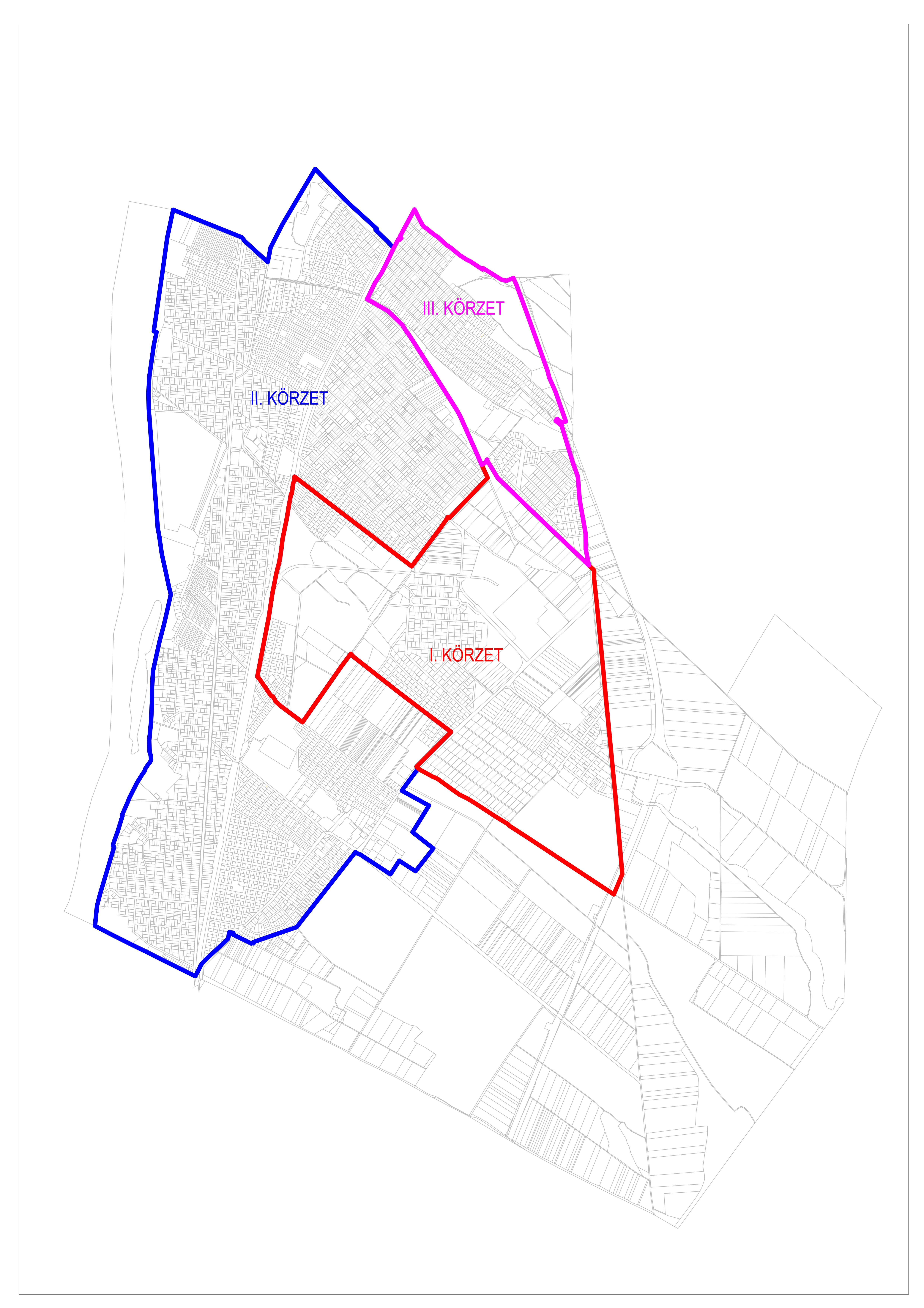 5. § A telekadó mértéke a belterületen található telkek esetében az 1. melléklet szerinti körzeteknek megfelelő elhelyezkedés, valamint a 8. §-ban meghatározott feltételek szerint differenciált. A körzetek szerinti felosztást ábrázoló várostérképet a rendelet függeléke tartalmazza.