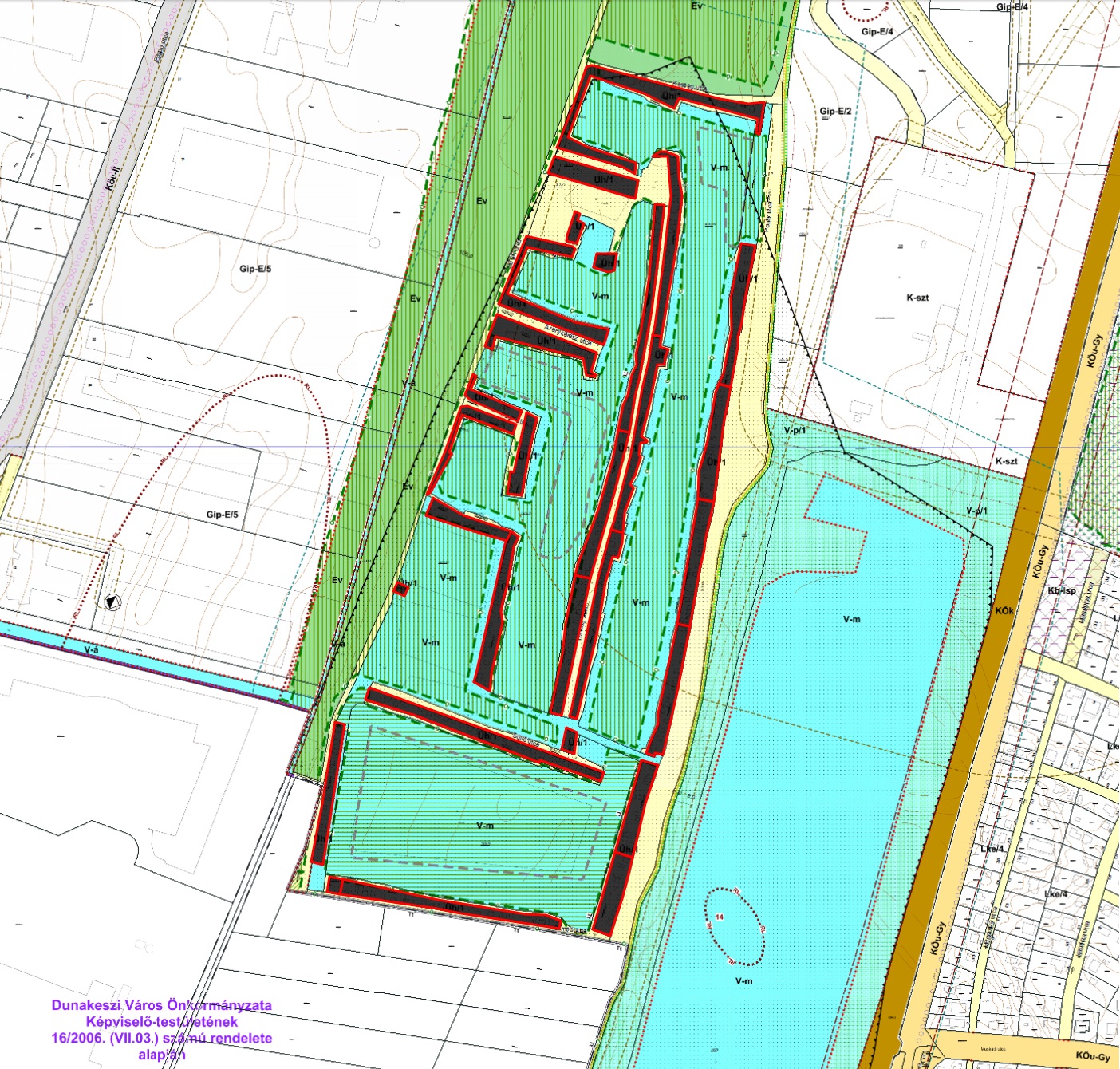 12. Toldi lakóparktól északra lévő területek: Kossuth Lajos utca (047/17 hrsz) és meghosszabbítása, Zerkovitz Béla utca (7502/12 hrsz) és meghosszabbítása, valamint az M2-es (049/3 hrsz) által határolt gazdasági területek (a 6/2018. (V.31.) önk. rendelet alapján jelen rendelet hatálybalépésekor Gip-E/1, Gksz/1 építési övezet)