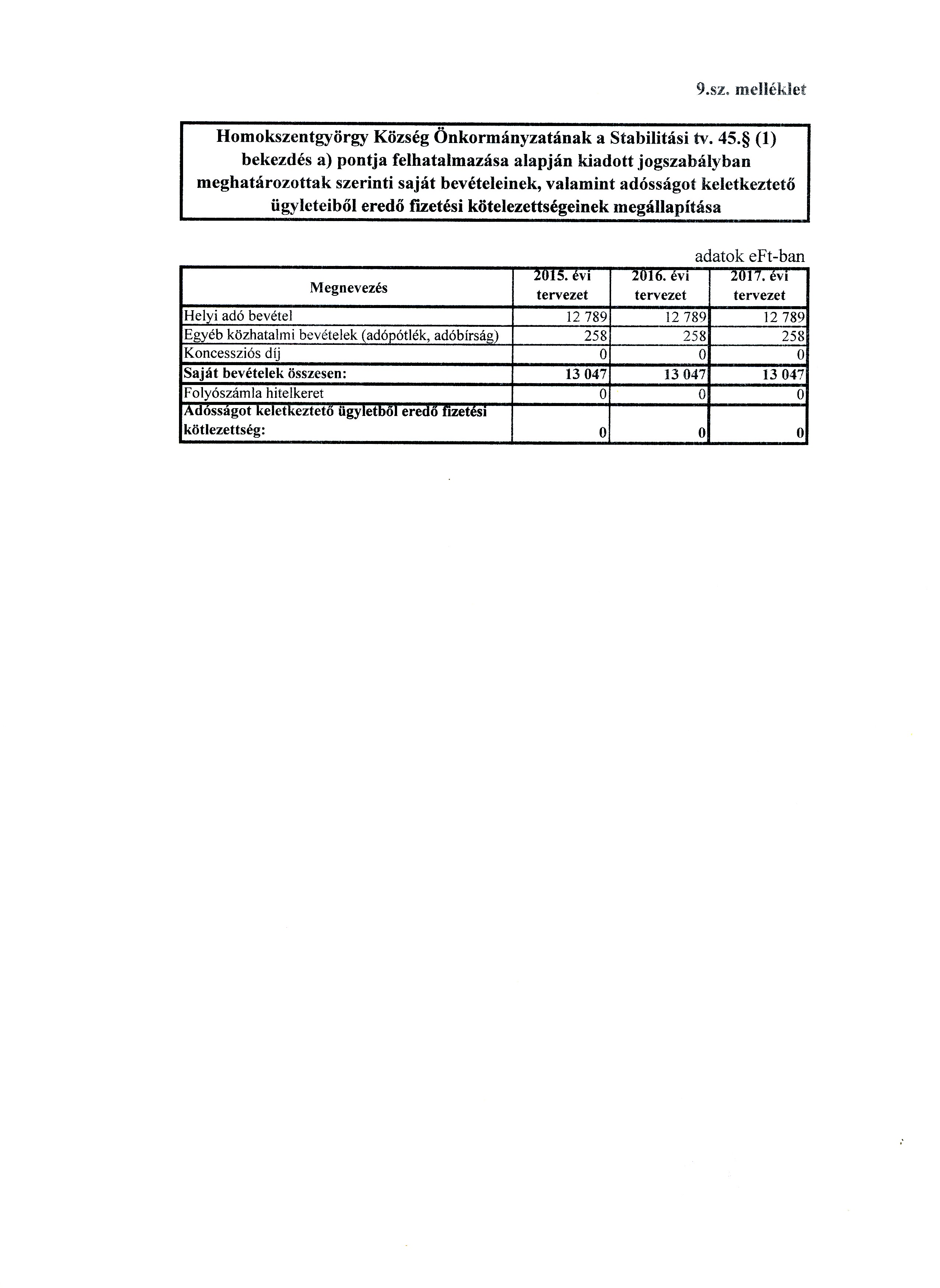 28. § Az önkormányzat a Stabilitási Tv. 3. § (1) bekezdése szerinti adósságot keletkeztető ügyletekből és kezességvállalásokból fennálló kötelezettségeit az adósságot keletkeztető ügyletek futamidejének végéig, illetve a kezesség érvényesíthetőségéig, és a figyelembe vehető saját bevételeit a 9. sz mellékletben határozza meg.