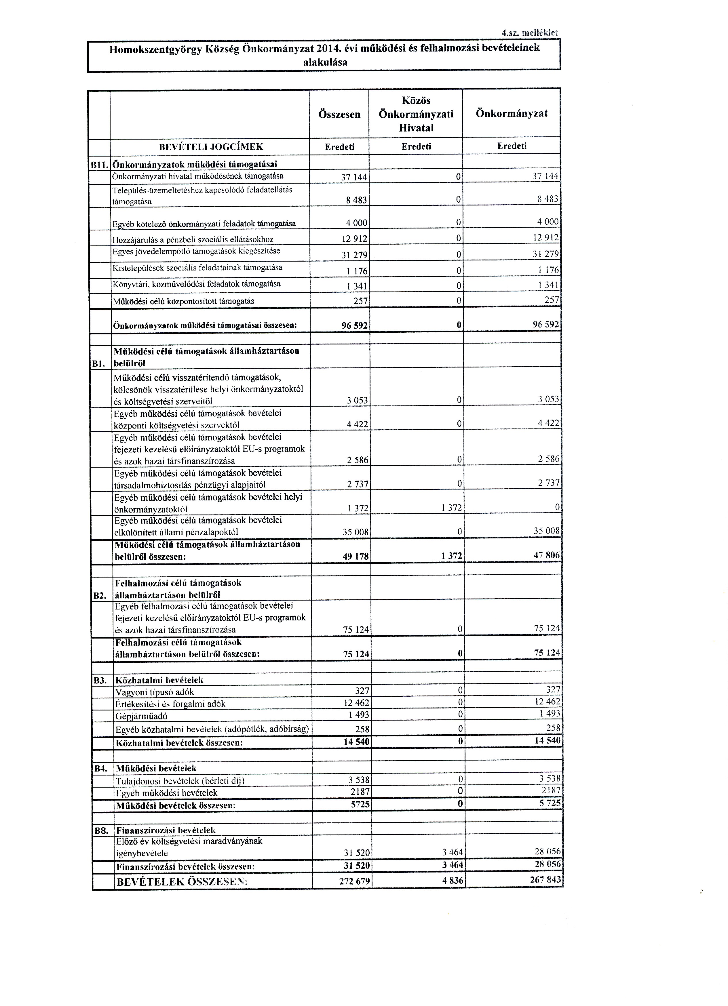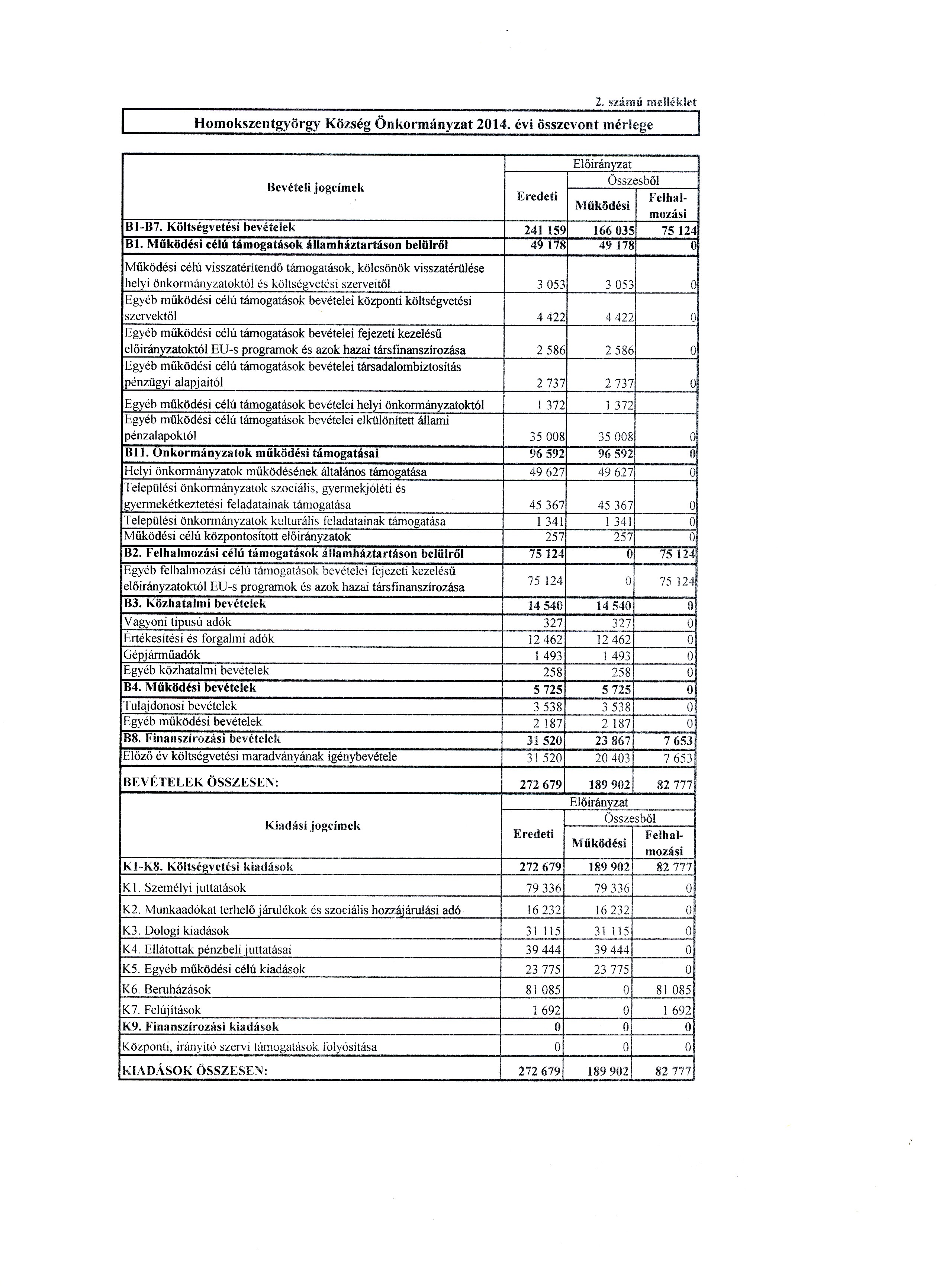 2. § A képviselő-testület az önkormányzat önkormányzati szinten összesített 2014. évi költségvetési kiadási és bevételi főösszegét 272.679 ezer forintban állapítja meg.