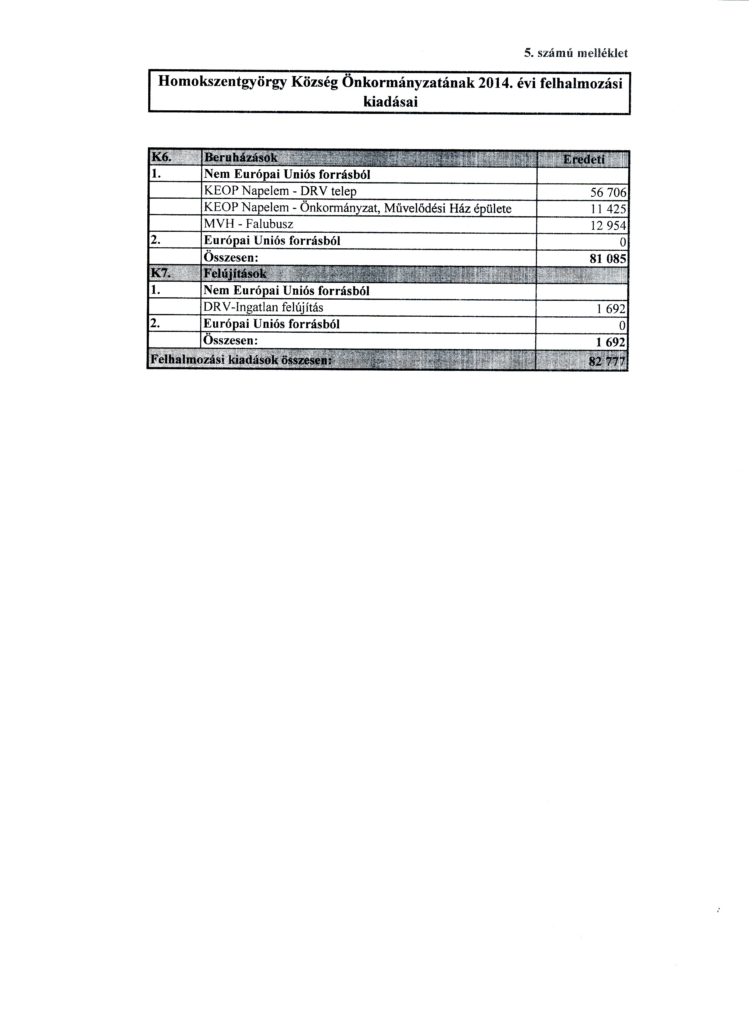 13. § A Képviselő-testület az önkormányzat felhalmozási kiadásait a 5. sz. melléklet szerint hagyja jóvá.