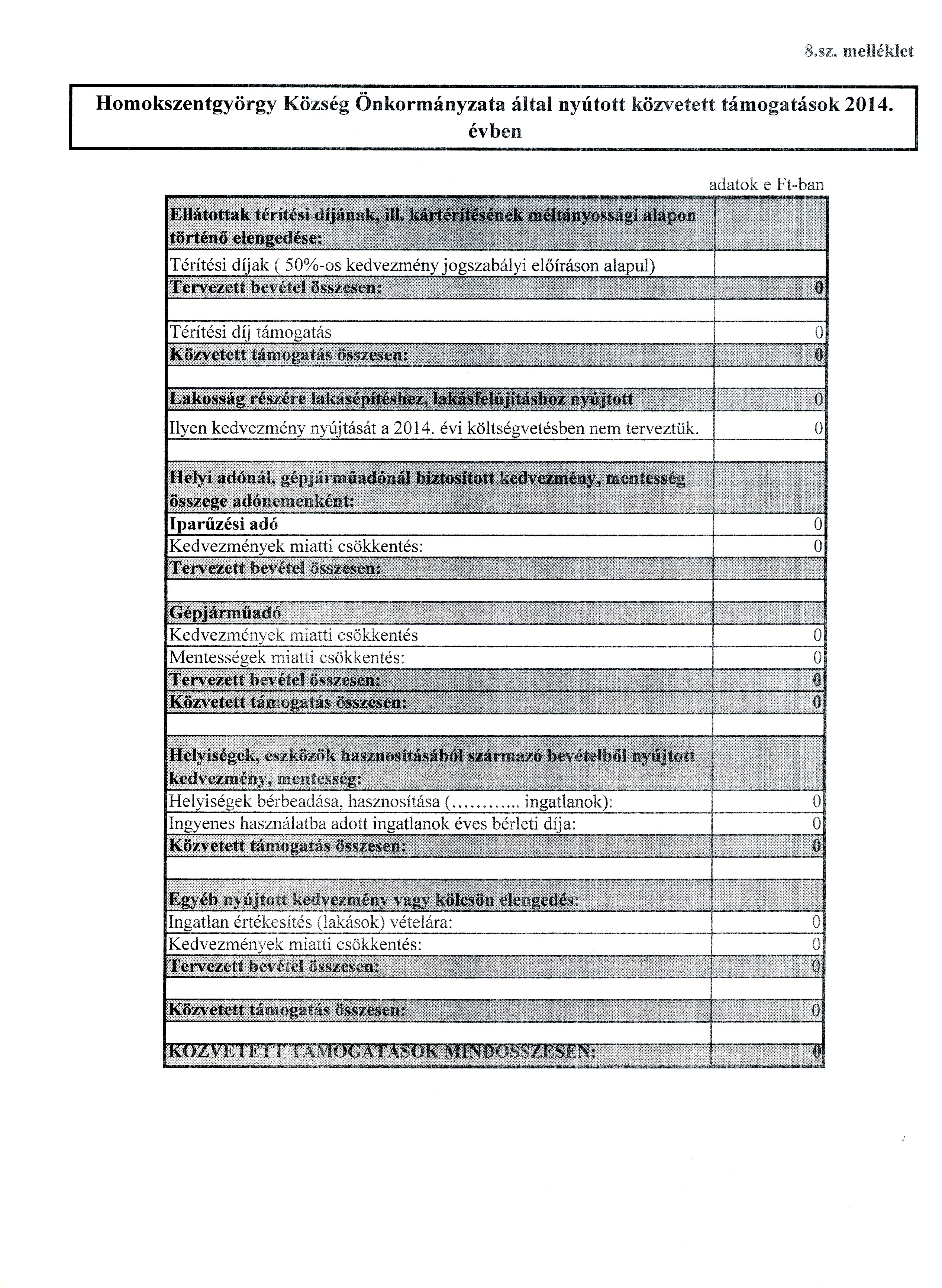 16. § Az önkormányzat által adott közvetett támogatásokat tartalmazó kimutatást a 8. sz. melléklet szerinti tartalommal hagyja jóvá.