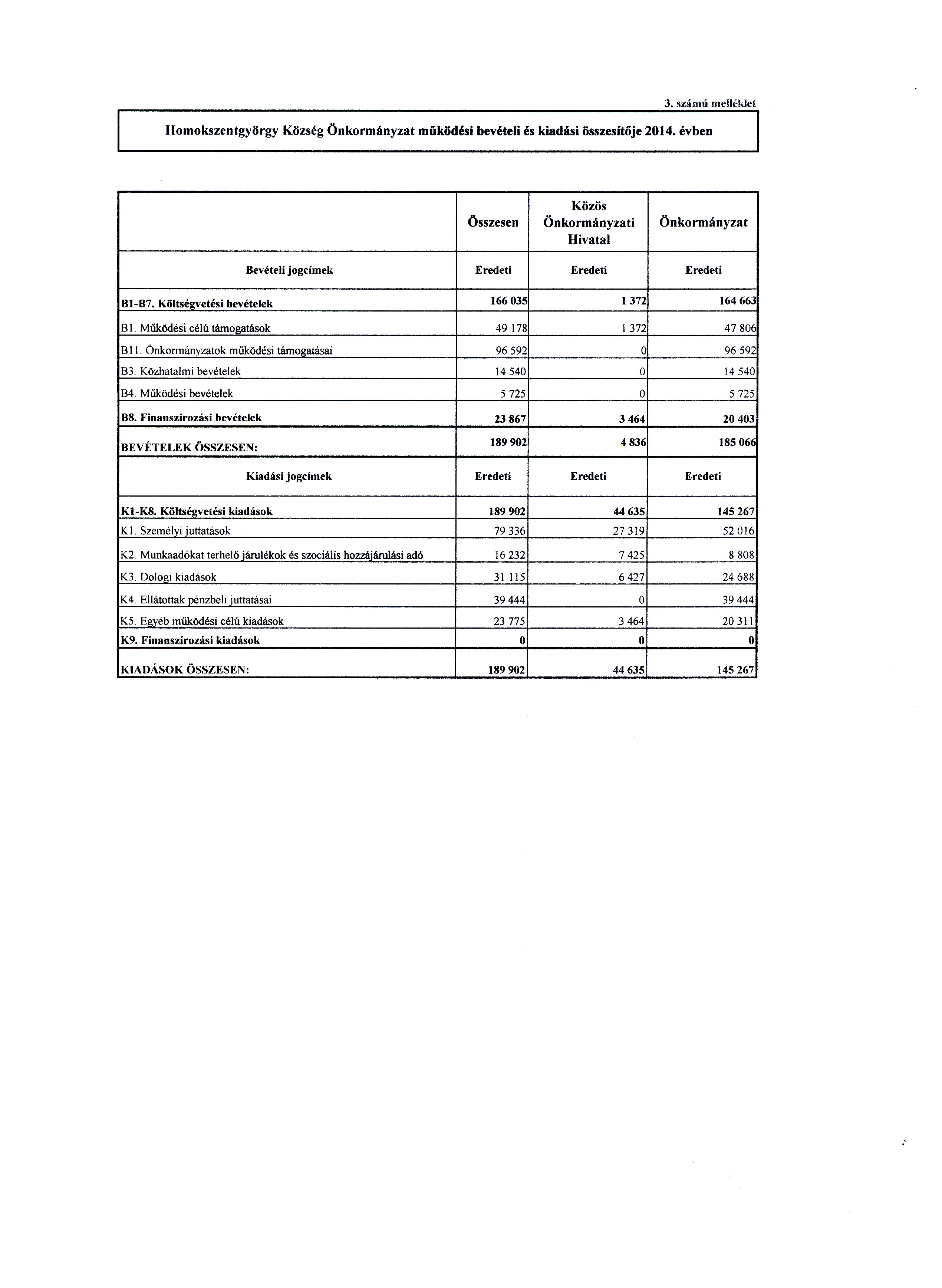 3. Az önkormányzat Közös Hivatalának költségvetése