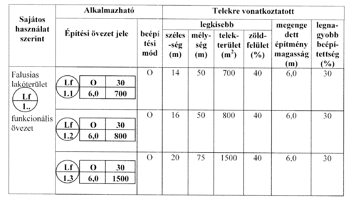TERÜLETFELHASZNÁLÁSI EGYSÉGEK ÖVEZETI SZABÁLYOZÁSA BEÉPÍTÉSRE SZÁNT TERÜLETEK