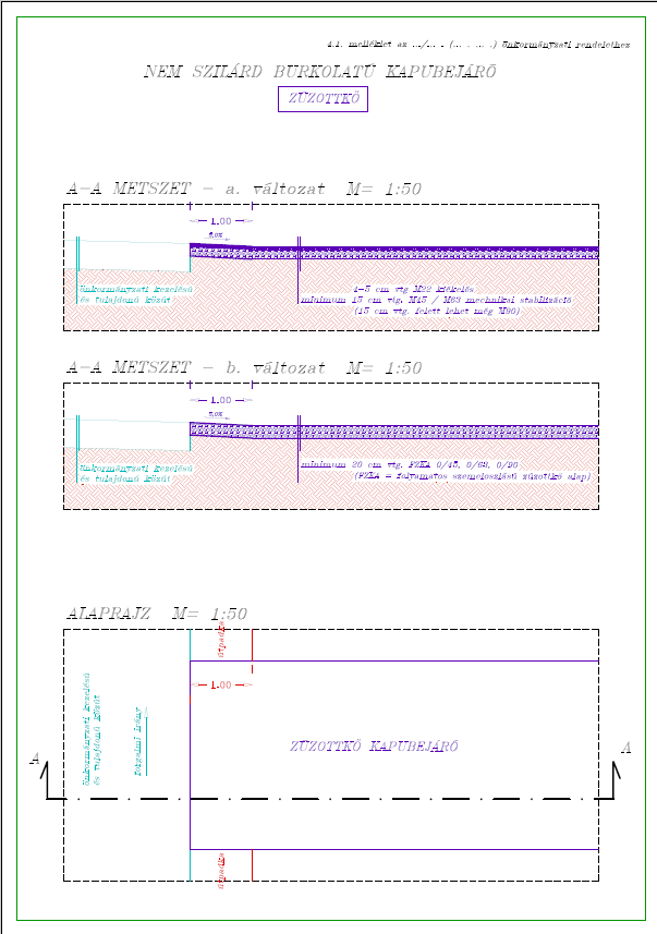 e) a közterületi zöldfelület útpadkára eső részének feltöltésére az útszegéllyel egy szintben, max. a burkolt úttól, vagy az út területének szegélytől mért 1,00 m szélességig kerülhet sor.