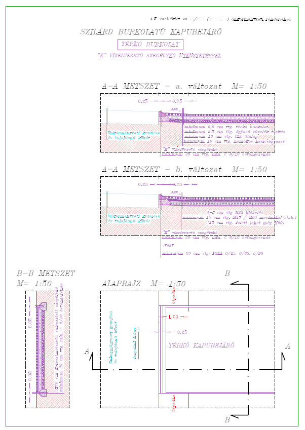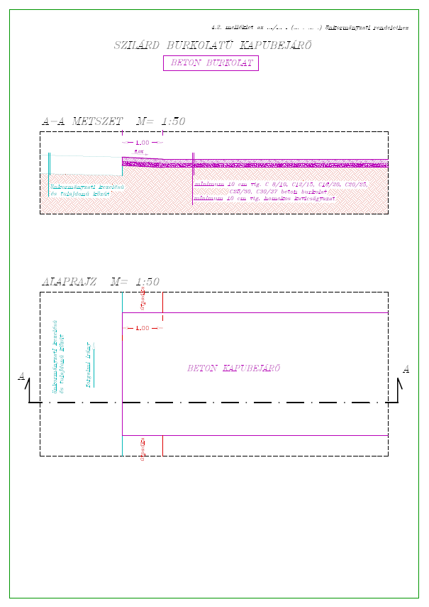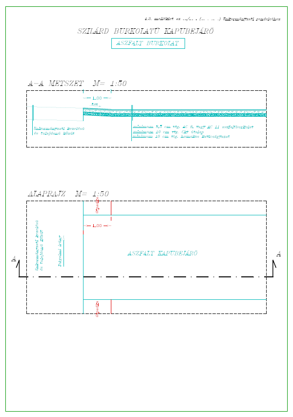 (2) Az (1) bekezdésben meghatározott kérelemhez mellékelni kell a tervezett változtatásokról készült 1:50 arányú helyszínrajzot - a tervezett gépjárműbehajtók tekintetében jelen rendelet 4. mellékletében található típustervek is alkalmazhatók - , feltüntetve a környező tereptárgyakat (csapadékvíz elvezető csatorna, növényzet, közművek nyomvonala, szolgáltatók oszlopai, járda, stb.) és azok telekhatártól és a közterületi zöldfelületet szegélyező úttesttől mért távolságát, az alábbi tartalommal: