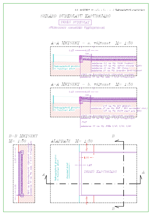 bb) a burkolt út szélétől mért 1,00 m-es sáv függőleges vetületébe növényzet 3,50 m-en belül nem nyúlhat.