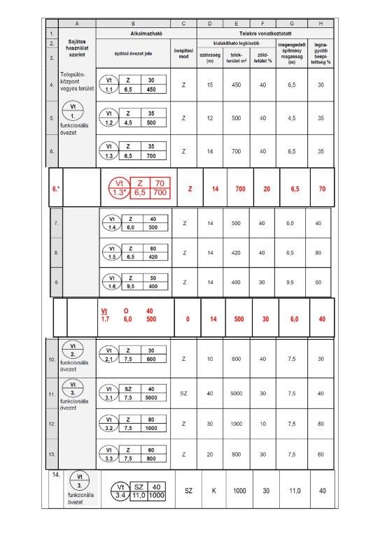b) 2 vegyes terület, azon belül településközpont vegyes terület,
