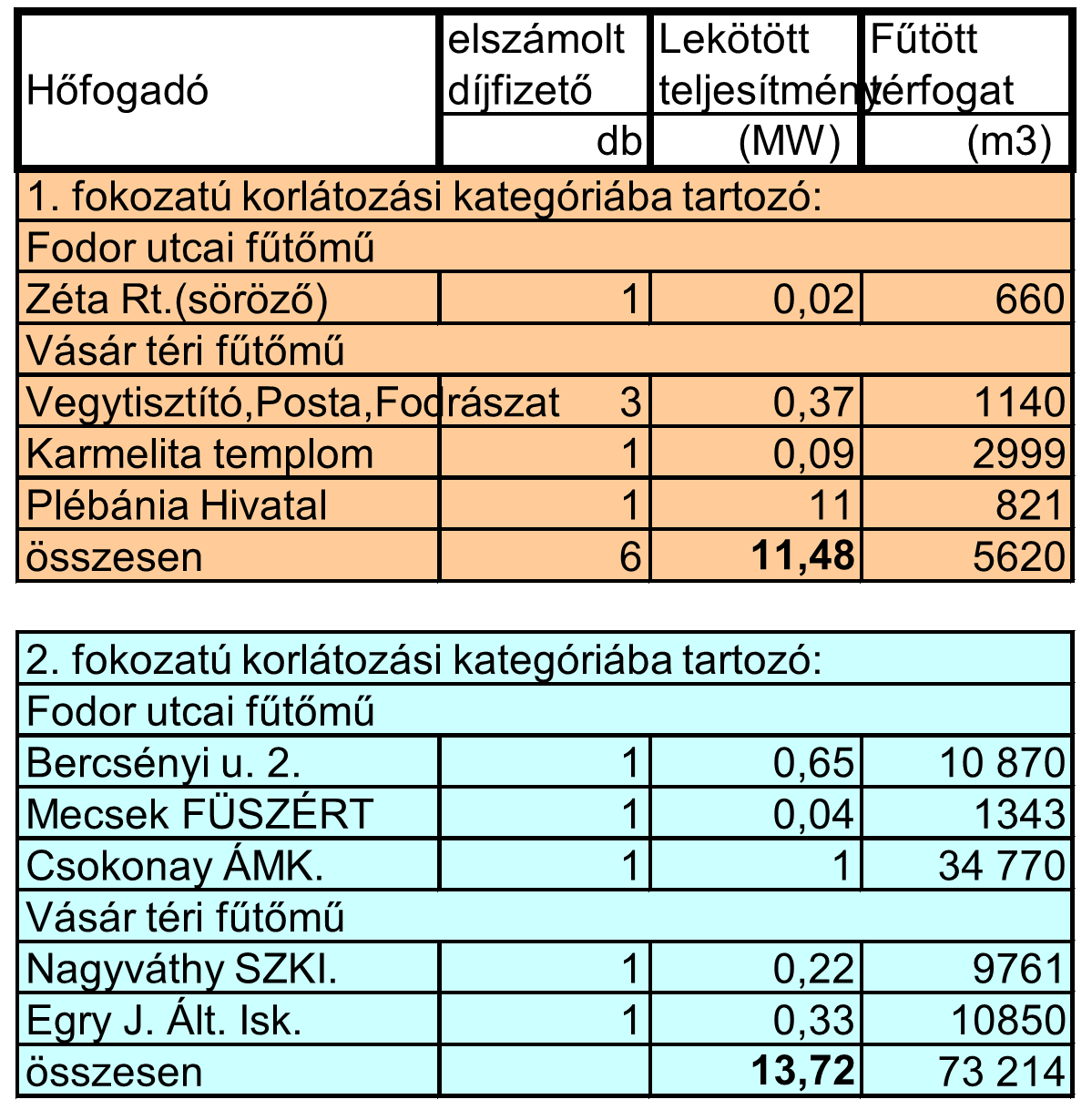 1. fokozat: a nem közhasznú, nem közérdekű, nem közellátási célú gazdasági tevékenységet folytató egyéb felhasználók, a távhőfelhasználás 50%-os korlátozásával,