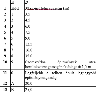 1. § A Miskolc Megyei Jogú Város Építési Szabályzatáról - (MÉSZ) szóló 21/2004. (VII.06.) önkormányzati rendelet (a továbbiakban: MÉSZ) 45. § 3/b. táblázata helyébe a következő táblázat lép: 3/b. táblázat Az egyes magasságokhoz tartozó előírás tartalom