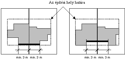 (2) Fekvőtelek esetében lakóterületen – Szabályozási Terv eltérő rendelkezése hiányában – az előkert mélysége az érintett utcaszakaszon kialakult mérték, de legalább 3 méter, a hátsókert mélysége legalább az oda néző homlokzat tényleges magassága, de legalább 4 méter az építmények közötti legkisebb távolságok megtartásával.
