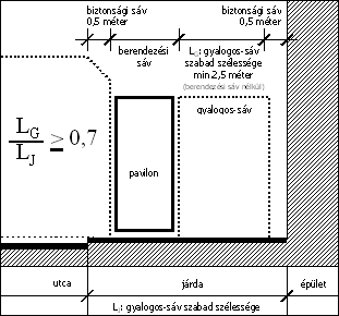 d) A tervezett burkolat milyenségétől függetlenül az épületek körül legalább 0,5 m széles, a bejárati gyalogos közlekedési felületeknél legalább 1,0 m széles, a gépjármű közlekedési felületeknél legalább 2,0 m széles burkolt felülettel kell számolni, illetve ha ennél szélesebb készül, azok teljes felületeit le kell vonni.