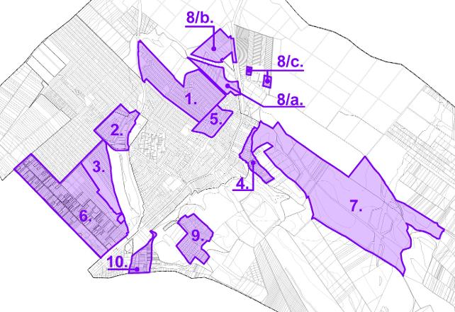 c) a meglévő és tervezett kül-, és belterületi határvonal megszüntetés,
