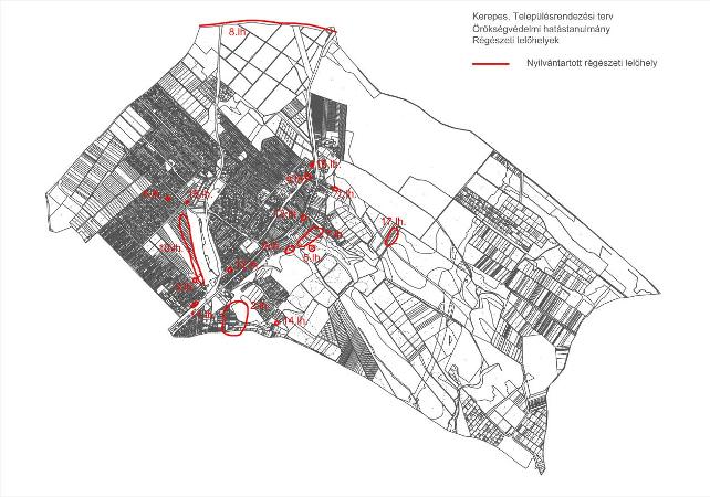 a) 1.sz. függelék: A településen a szabályozási terven jelölt területeken – a kulturális örökség védelméről szóló 2001. évi LXIV. törvény erejénél fogva általános védelem alatt álló - nyilvántartott régészeti lelőhelyek