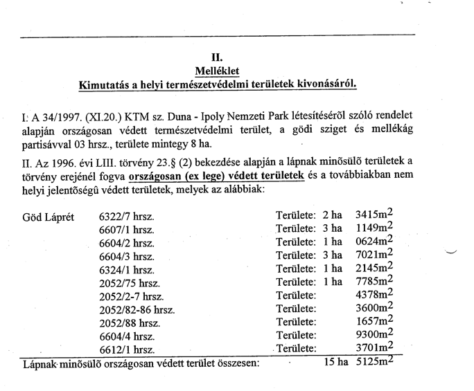 Göd Nagyközség Önkormányzat helyi jelentőségű természetvédelmi területként védetté nyilvánítja az alábbi területeket.