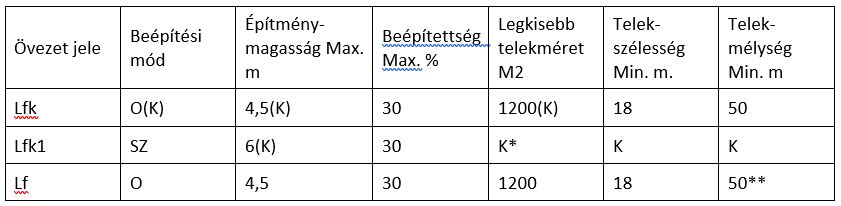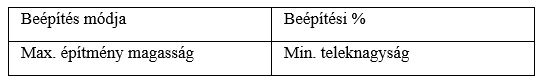 6. § (1) A területre vonatkozó szabályozási előírásokat – beépítési mód, maximális építmény magasság, maximális beépítettség, minimális telekterület – a szabályozási terv is tartalmazza, a minimális telekméretek az alábbiak szerint alakítandók ki.