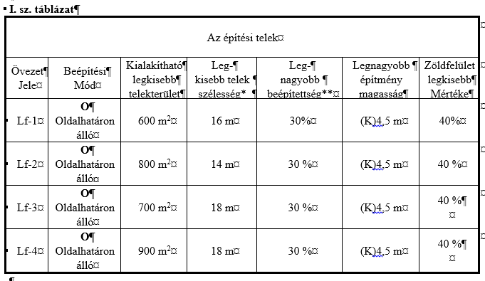 aa) Lf-1 Falusias lakóterület aprótelkes övezete