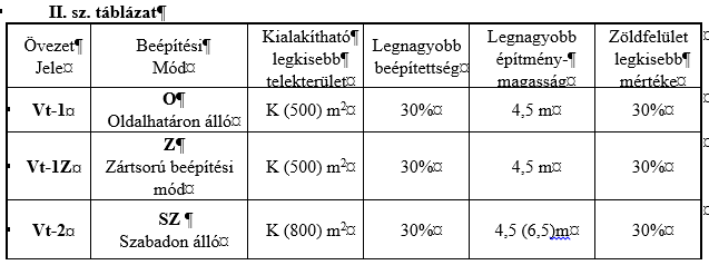 ba) Vt-1 Településközpont vegyes terület, dominánsan lakóépületek elhelyezésére szolgáló kis telkes övezet