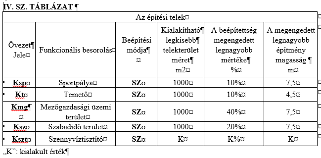5. § (1) Azokon a területeken, ahol a terület felhasználása, vagy az építés minősége (övezete) a szabályozási terven jelöltek szerint megváltozik, építés (és telekalakítás is) csak a változásnak megfelelően engedélyezhető.