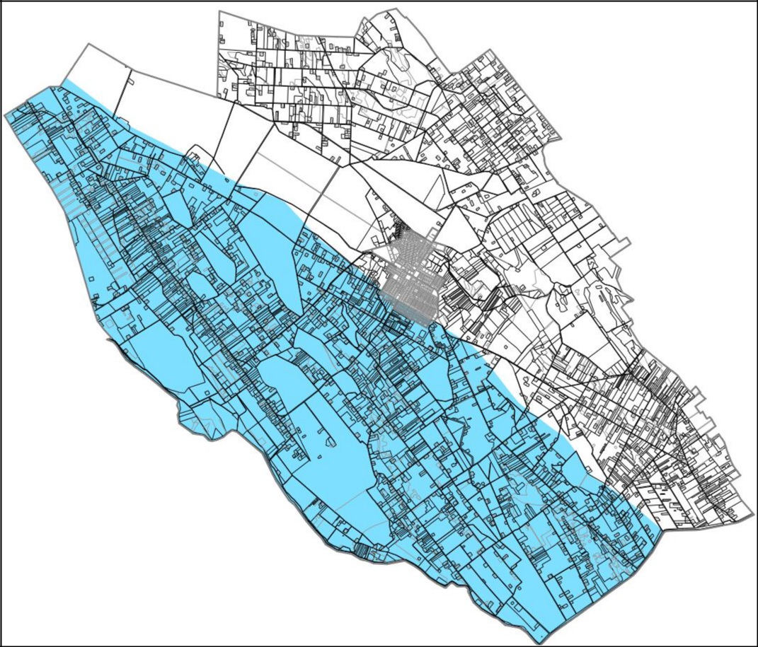 e) 65. számú melléklet: Vízminőség-védelmi terület által érintett földrészleteket tartalmazó térkép.