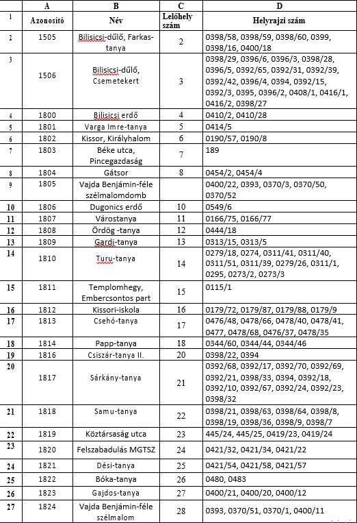 c) 53. számú melléklet: Régészeti lelőhelyek listája
