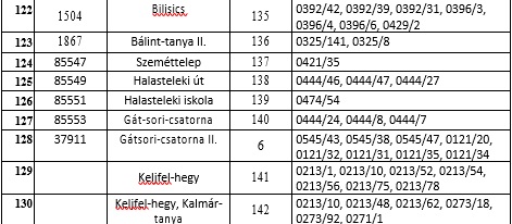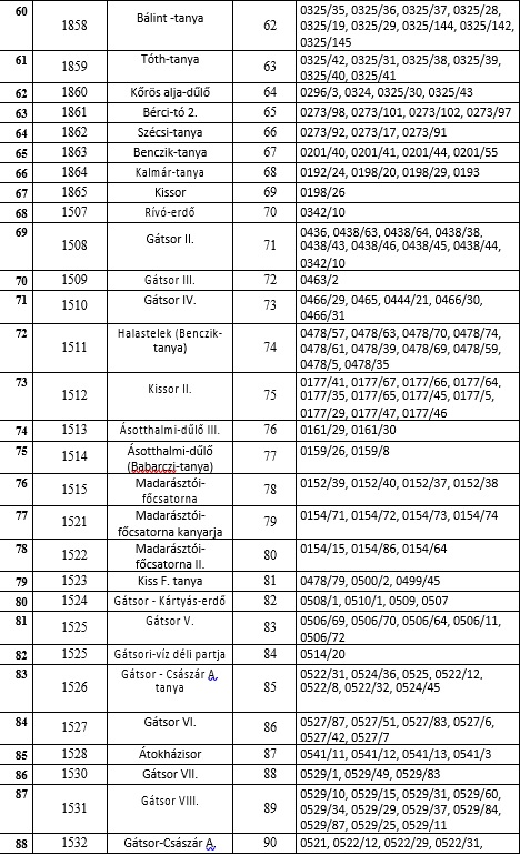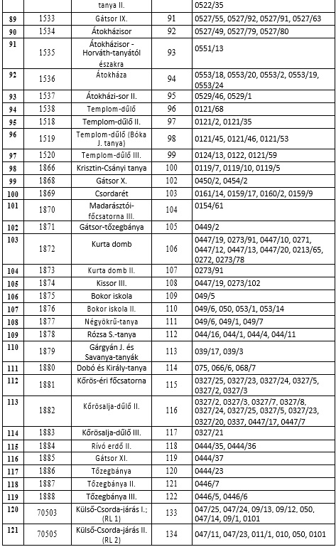 a) 1. számú függelék: Az európai közösségi jelentőségű természetvédelmi rendeltetésű területekkel érintett földrészletek listája