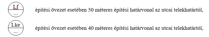 d) ÉPÍTÉSI VONAL Az építési vonalat a szabályozási terv szerint kell meghatározni, ha az övezeti szabályozás másként nem rendelkezik. A szabályozási terven az alábbi jelölések használatosak: