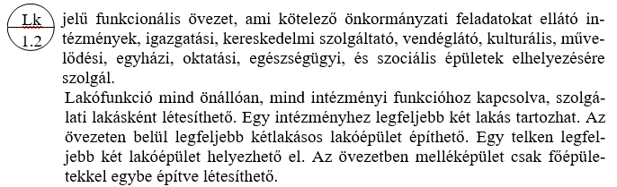 (1)23 A szabályozási terven Lk jellel jelölt területek sajátos használatuk szerint kisvárosias lakóterületek. A terület rendeltetési előírásai: