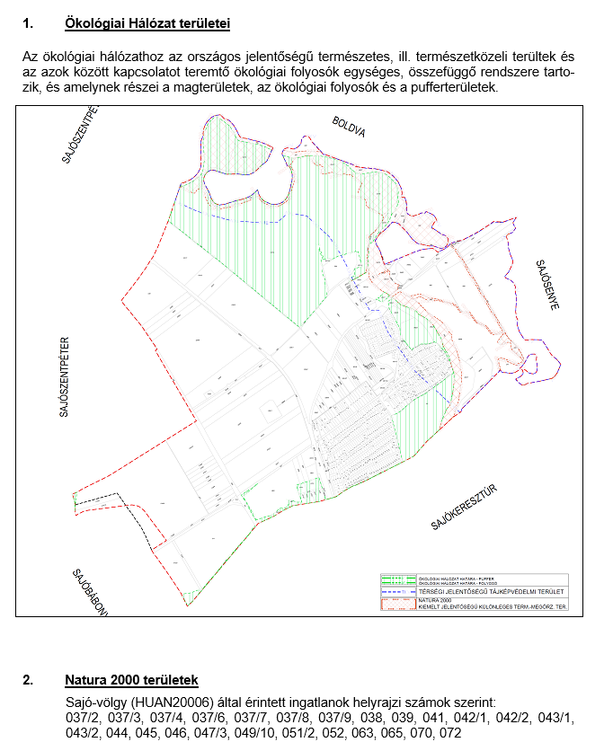 (2) A településen található európai közösségi jelentőségű természetvédelmi rendeltetésű (NATURA 2000) területek jegyzékét a tervvel összhangban a HÉSZ 1. számú függeléke tartalmazza.