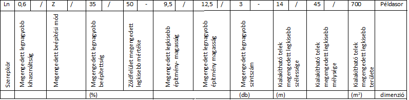 Az övezetekben érvényes telekalakítási és építési előírásokra az övezet sorszámából és jeléből álló kód utal.