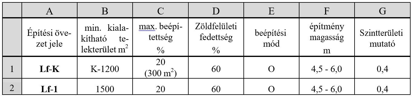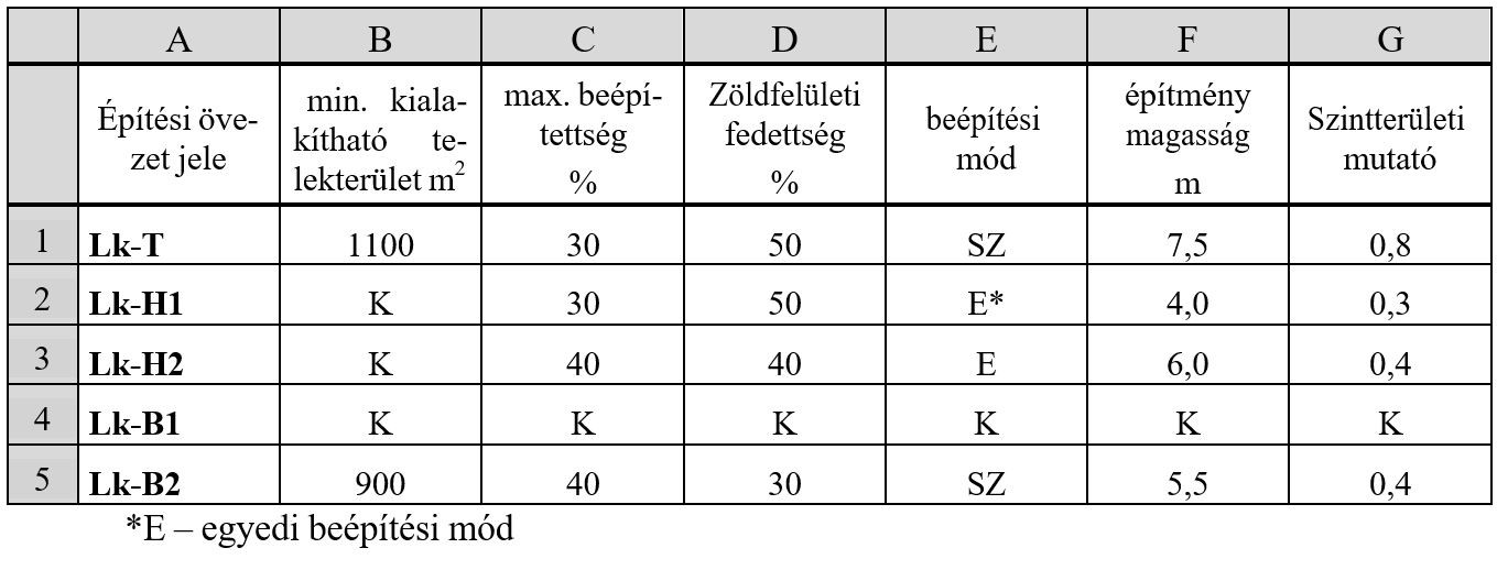 (2) Az Lk-B1 övezetben a meglévő teleknagyságok, beépítettség, építési mód, építménymagasság a kialakult szerint megtartandó.