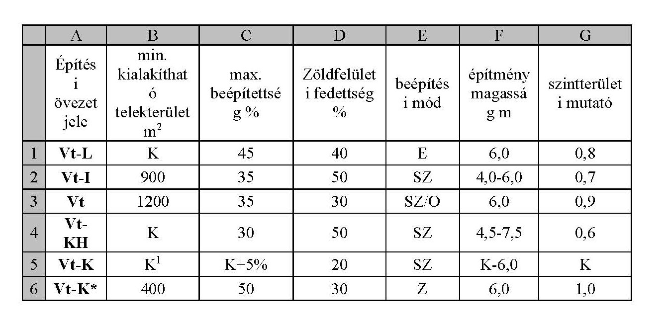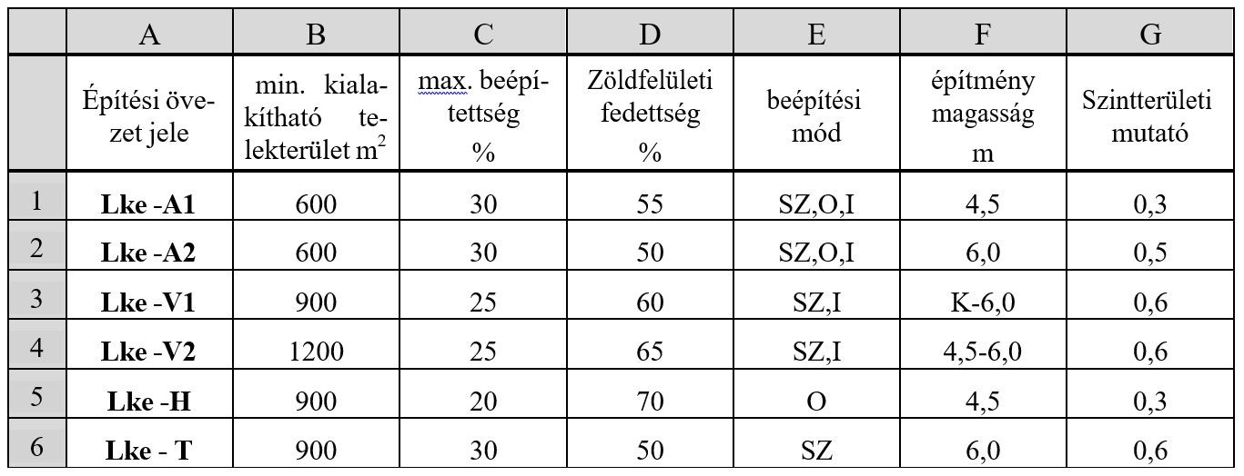 (5) A kisvárosias lakóterületek beépítettségük, egyéni karakterük alapján az alábbi építési övezetekre tagolódnak: